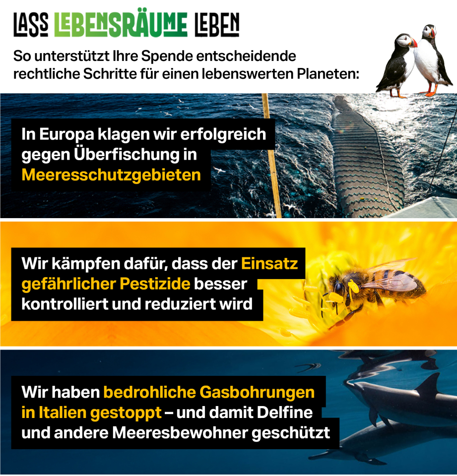 Das sind nur einige Beispiele. Jeder Erfolg vor Gericht bedeutet Hoffnung für eine bessere Zukunft und kann der Natur ihre Chance auf Erholung zurückgeben.
